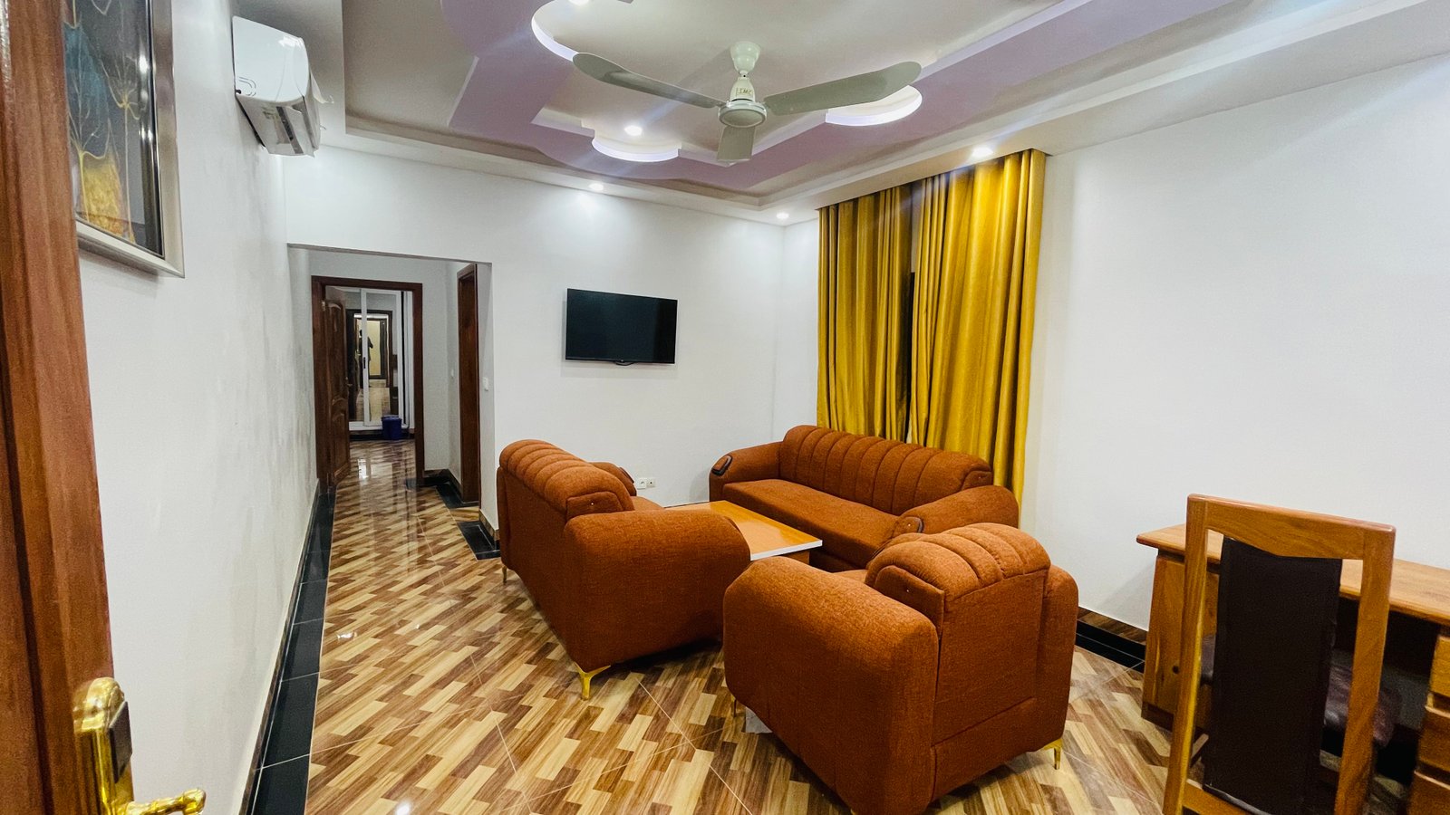 L'ultime expression du luxe et du comfort. Cette suite prestigieuse sépare espace de vie et chambre pour une intimité absolue. Avec sa double climatisation, sa kitchennette complète et son salon indépendant, elle réinvente l'art de l'hospitalité pour les séjours les plus exigeants.